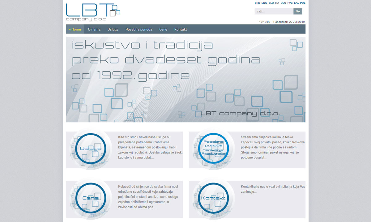 Animation, Applications, Booking service, Catalog, Development, Productions, Public Relations, Search engine optimisation, Web development